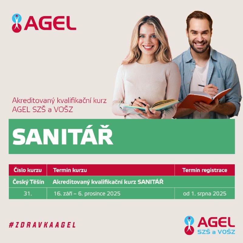 AGEL Střední zdravotnická škola a Vyšší odborná škola zdravotnická zahajuje další běh oblíbeného akreditovaného kvalifikačního kurzu Sanitář v Českém Těšíně. Po necelých třech měsících získají abso…